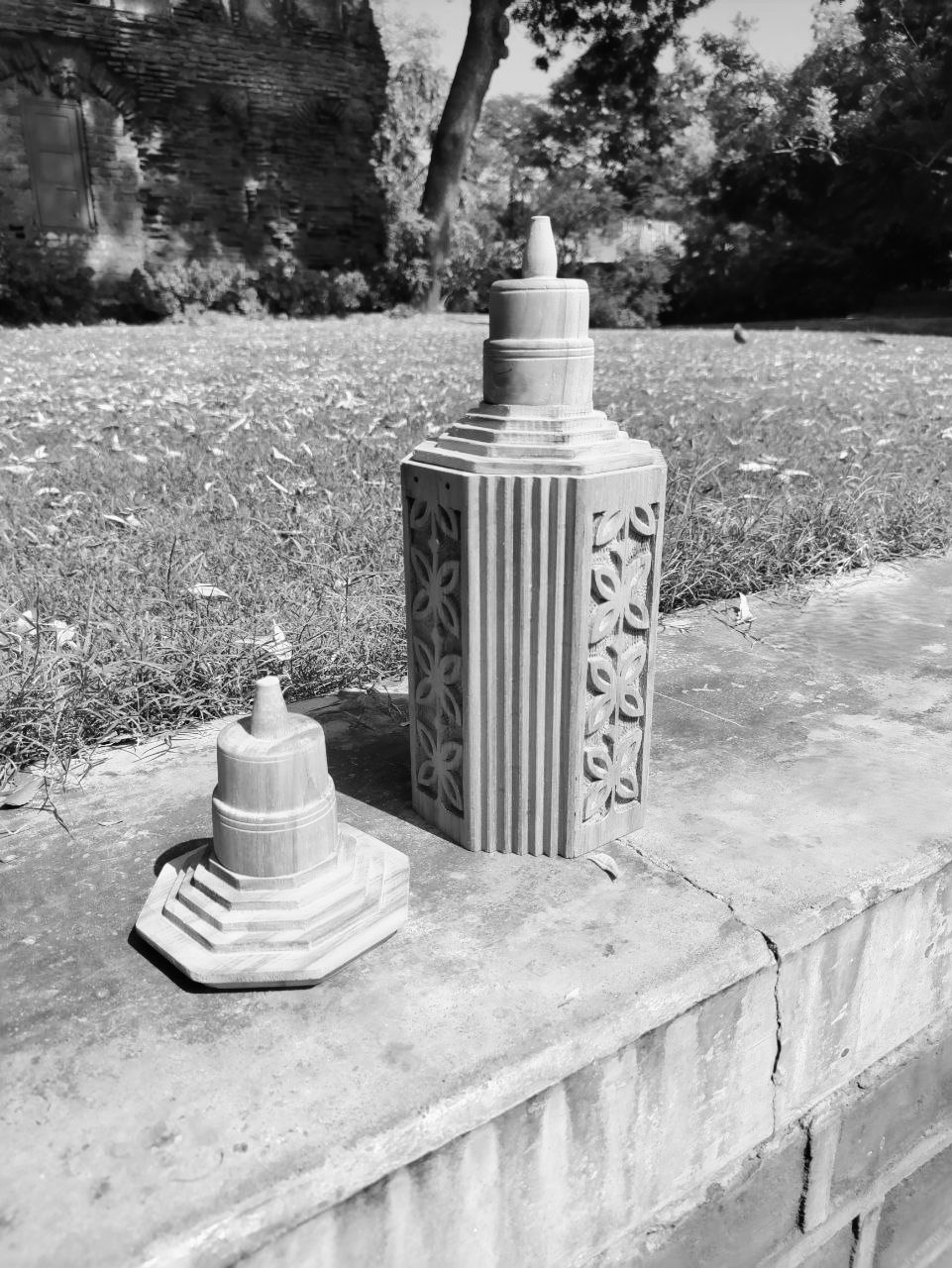 These mockups are made from high density thermocol, inspired from different types of stupa structures and lacquer box.