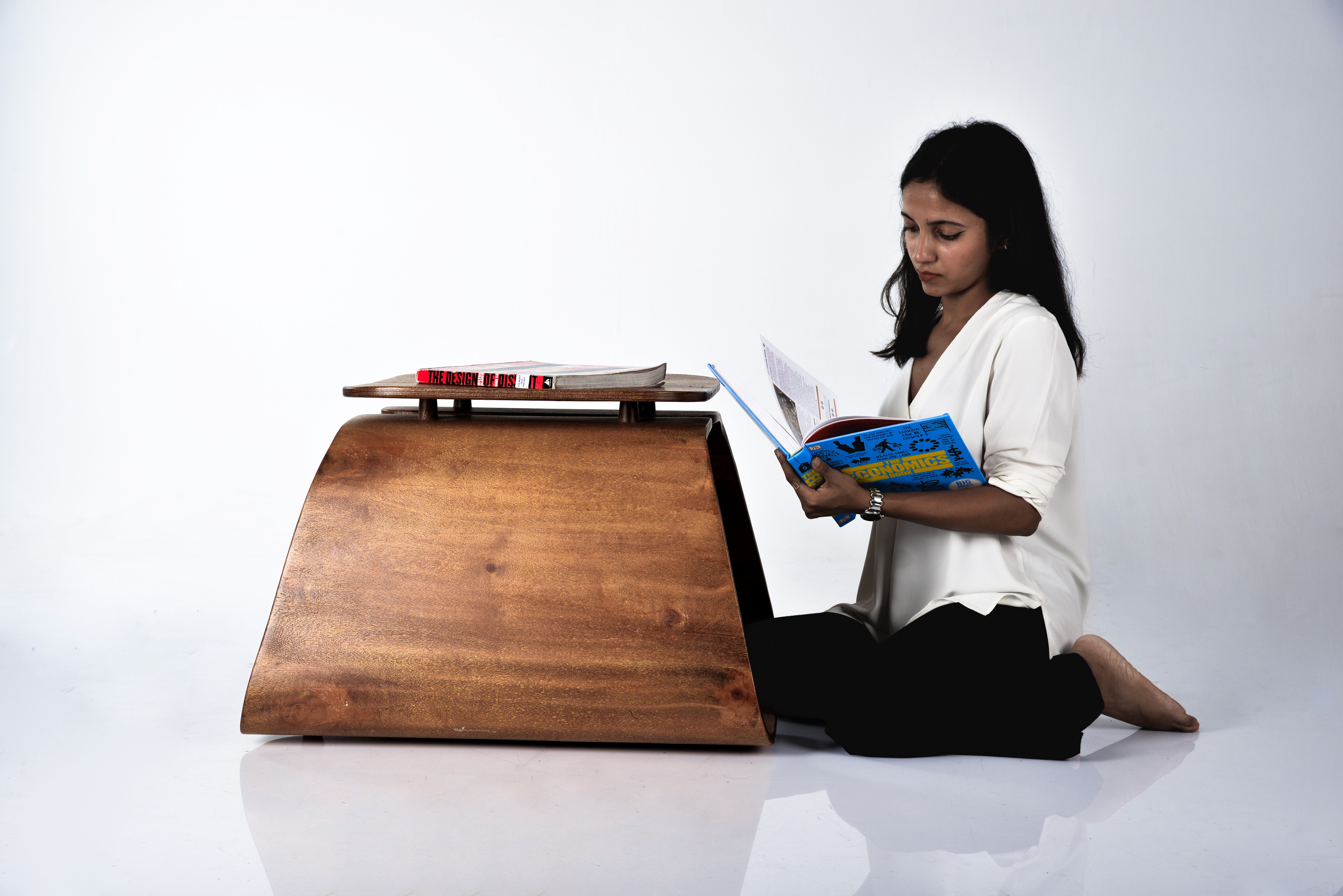 Create a furniture piece which has multiple use-case eg : Cross-leg sitting low sitting table, side table etc.