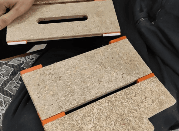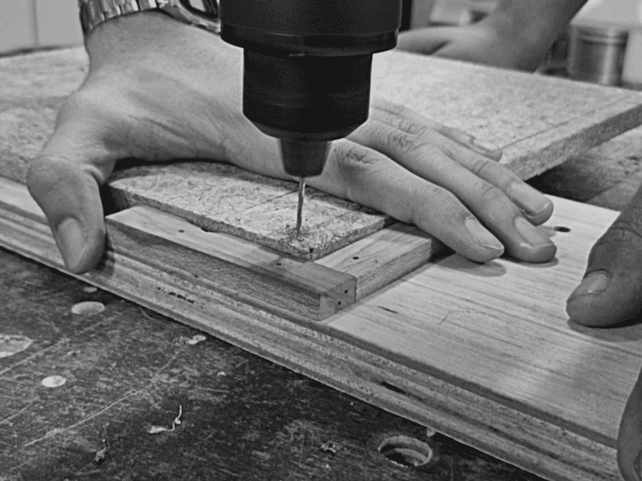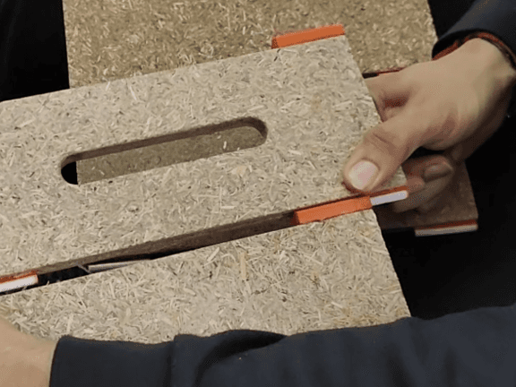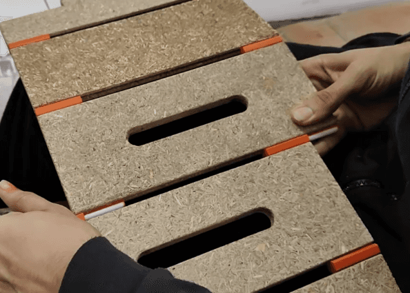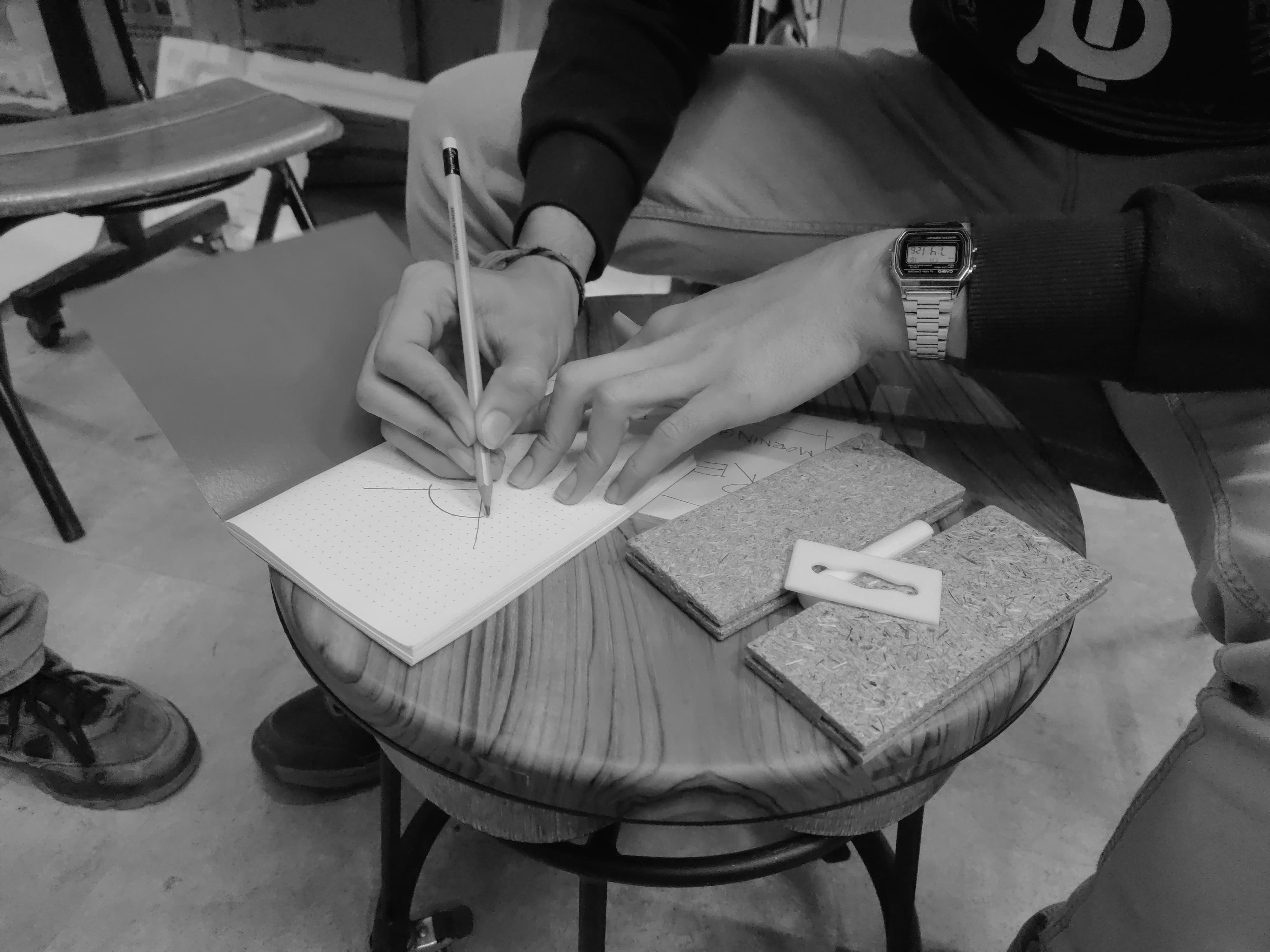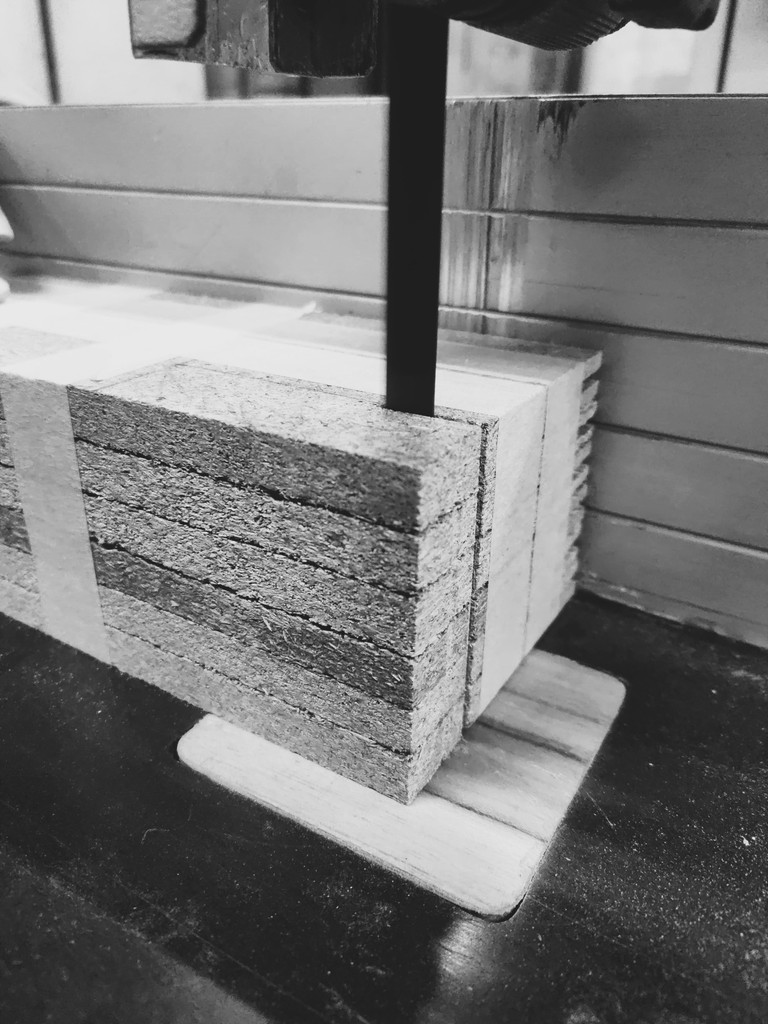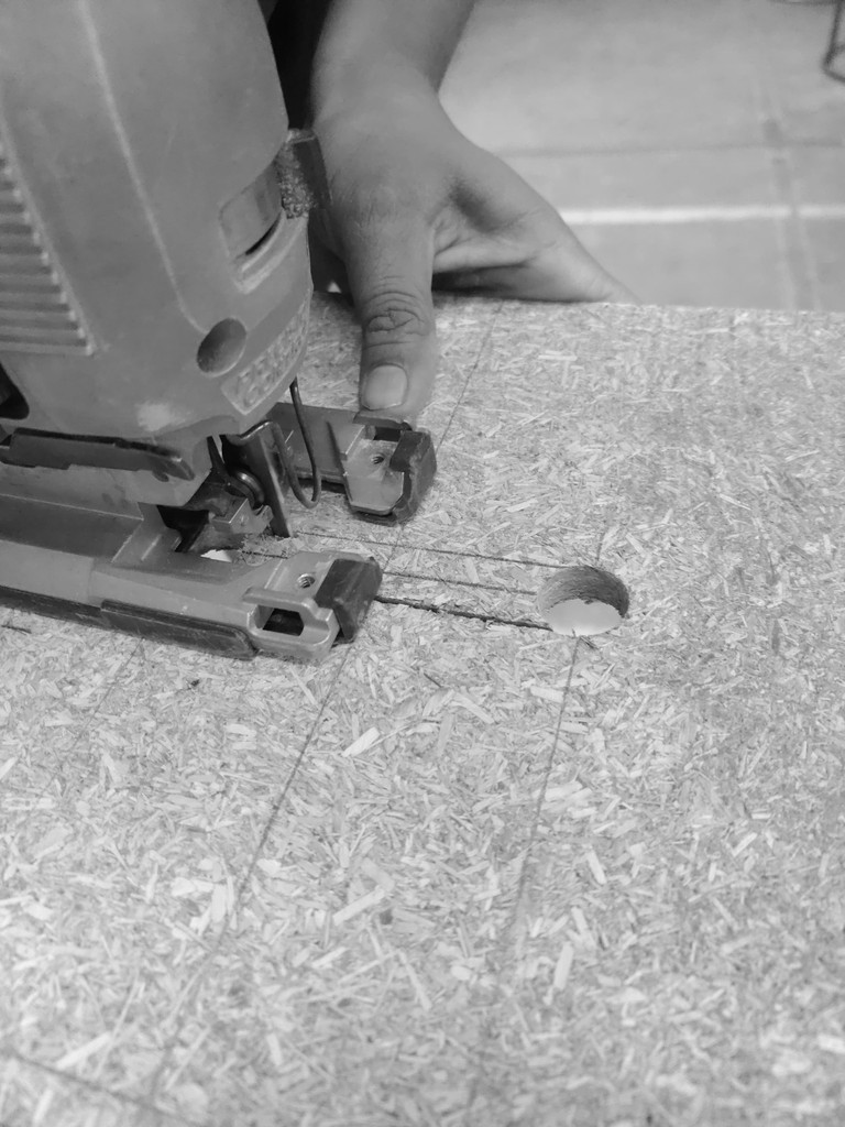 The first step Was to understand the characteristics of the material provided to us by : cutting, sanding, drilling, hand routing, grooving, staining, painting to understand its limitations.