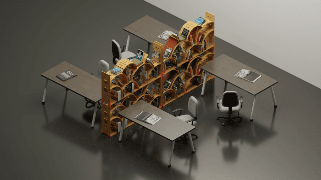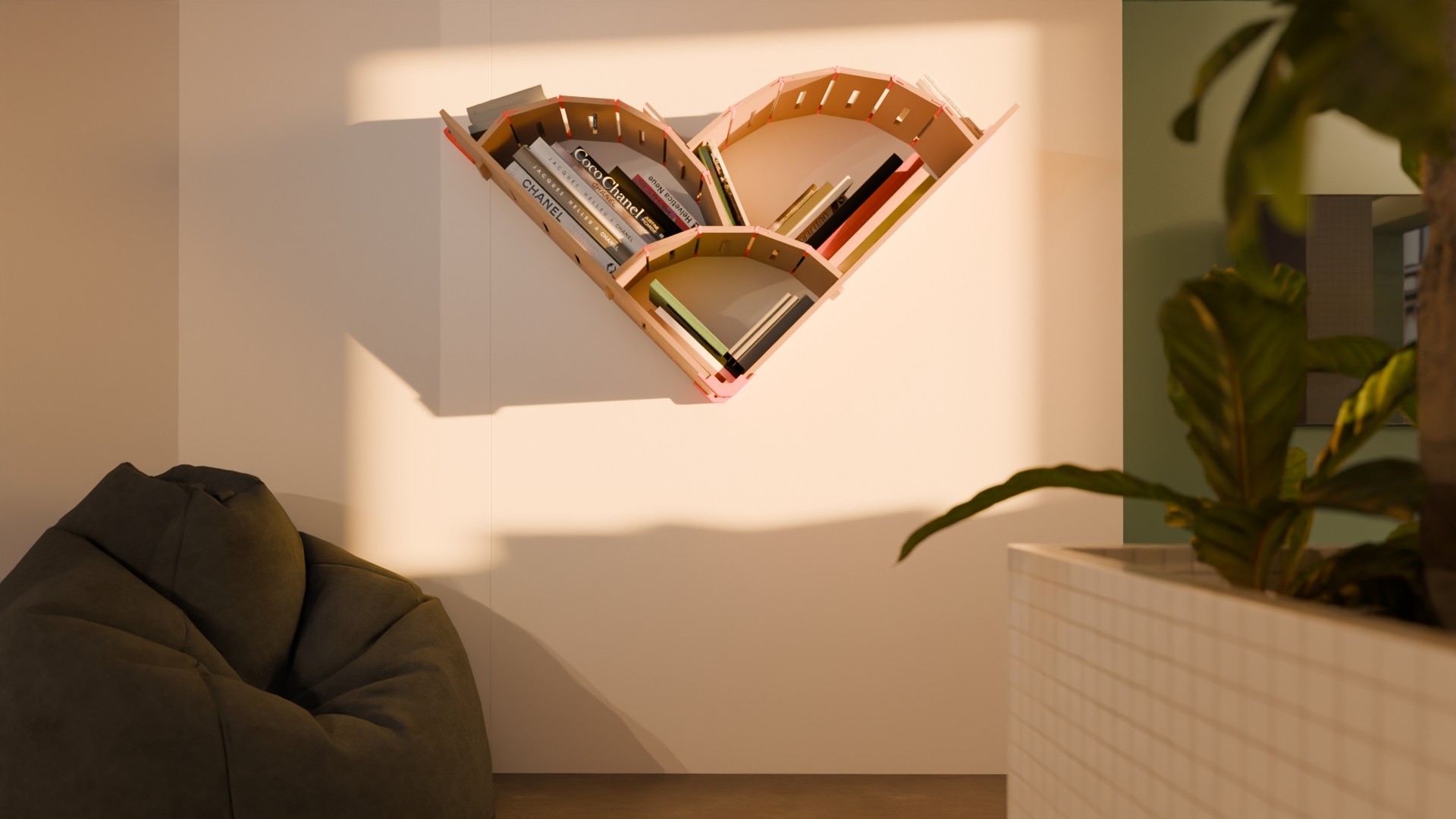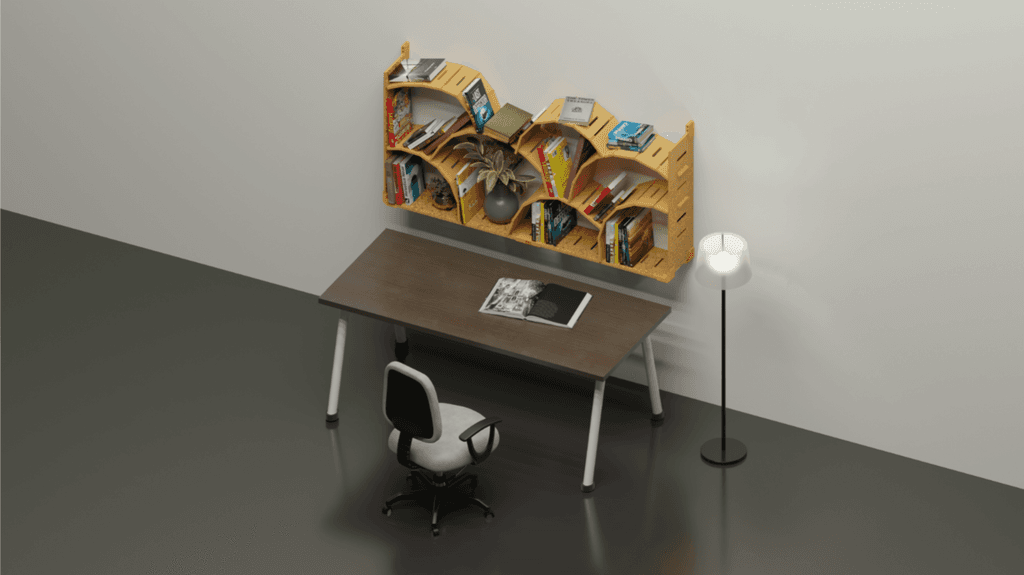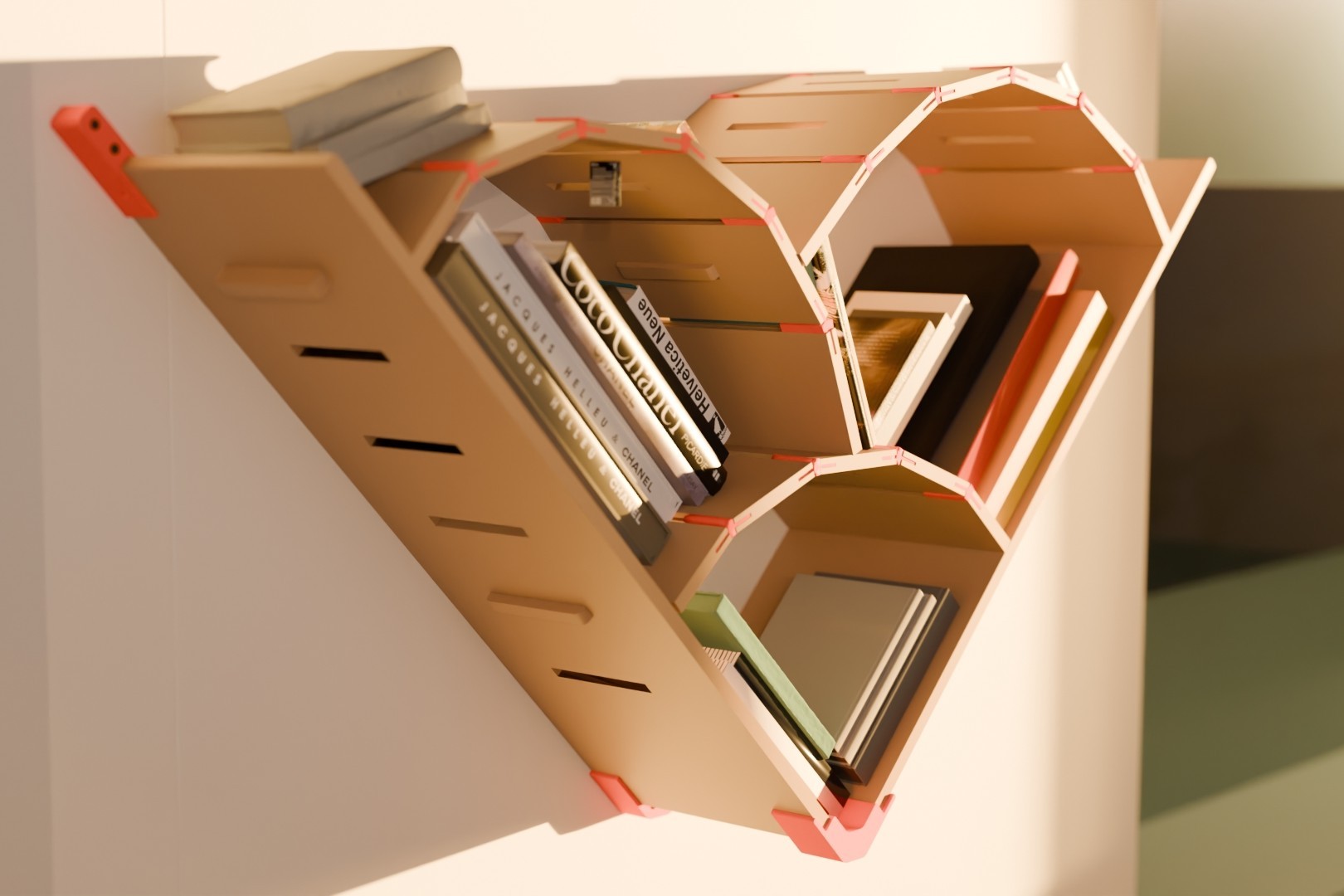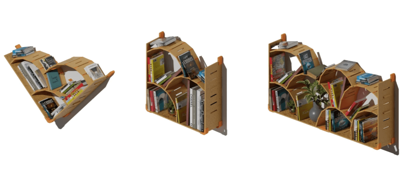 A modular bookshelf that grows and adapts with your collection whether large or small, thick or thin. Designed for personalization, it invites users to play, customize, and expand, transforming book storage into an engaging and creative experience.