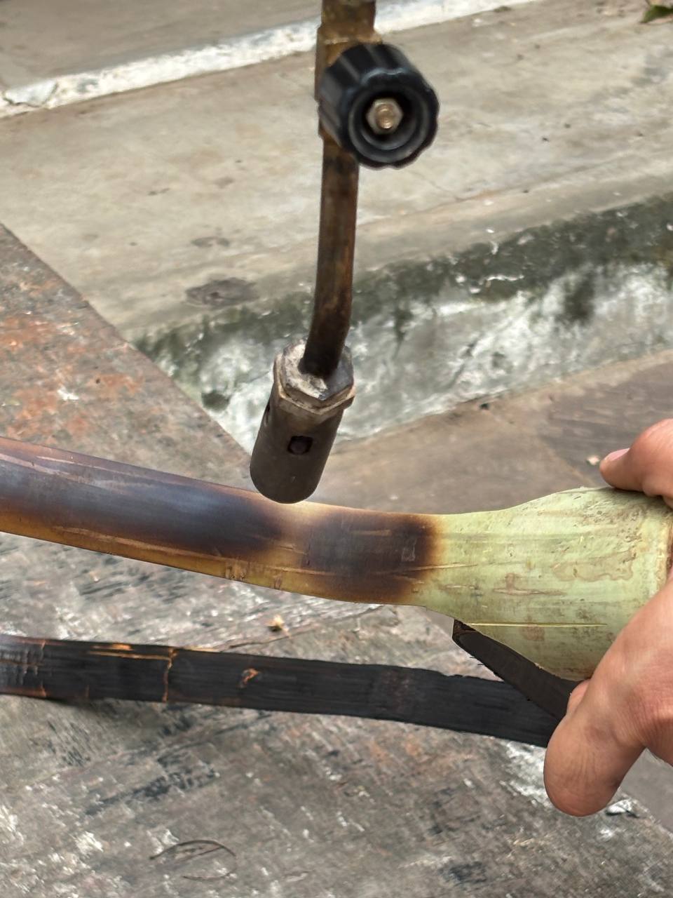 To keep the lamp fully sustainable, I charred the bamboo until its natural color turned black, eliminating the need for any artificial coating. I also made & used bamboo charcoal to fill the cracks, which makes it more stronger.